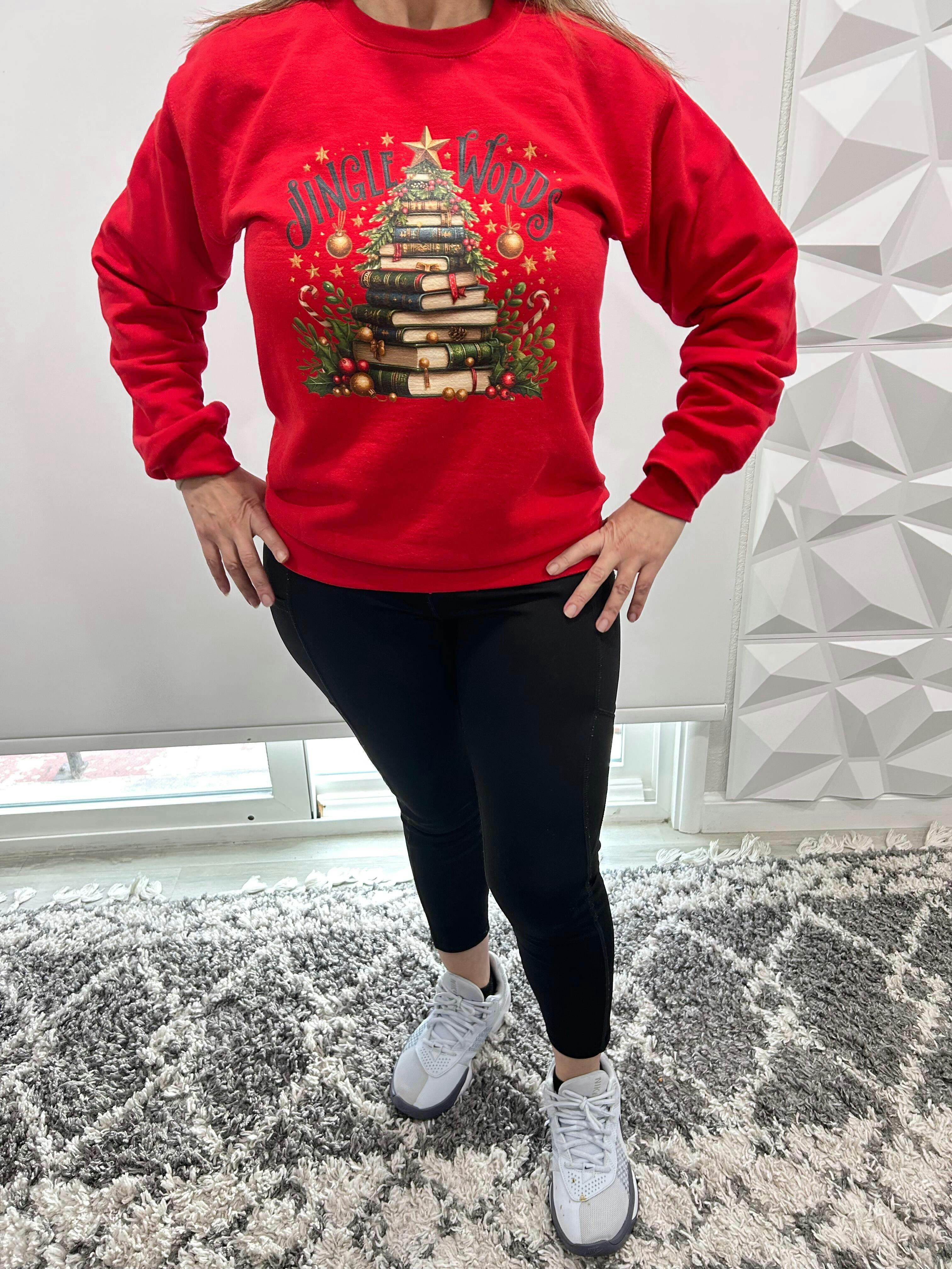 Christmas Book Tree Sweatshirt — "Jingle Words" Literary Holiday Crewneck