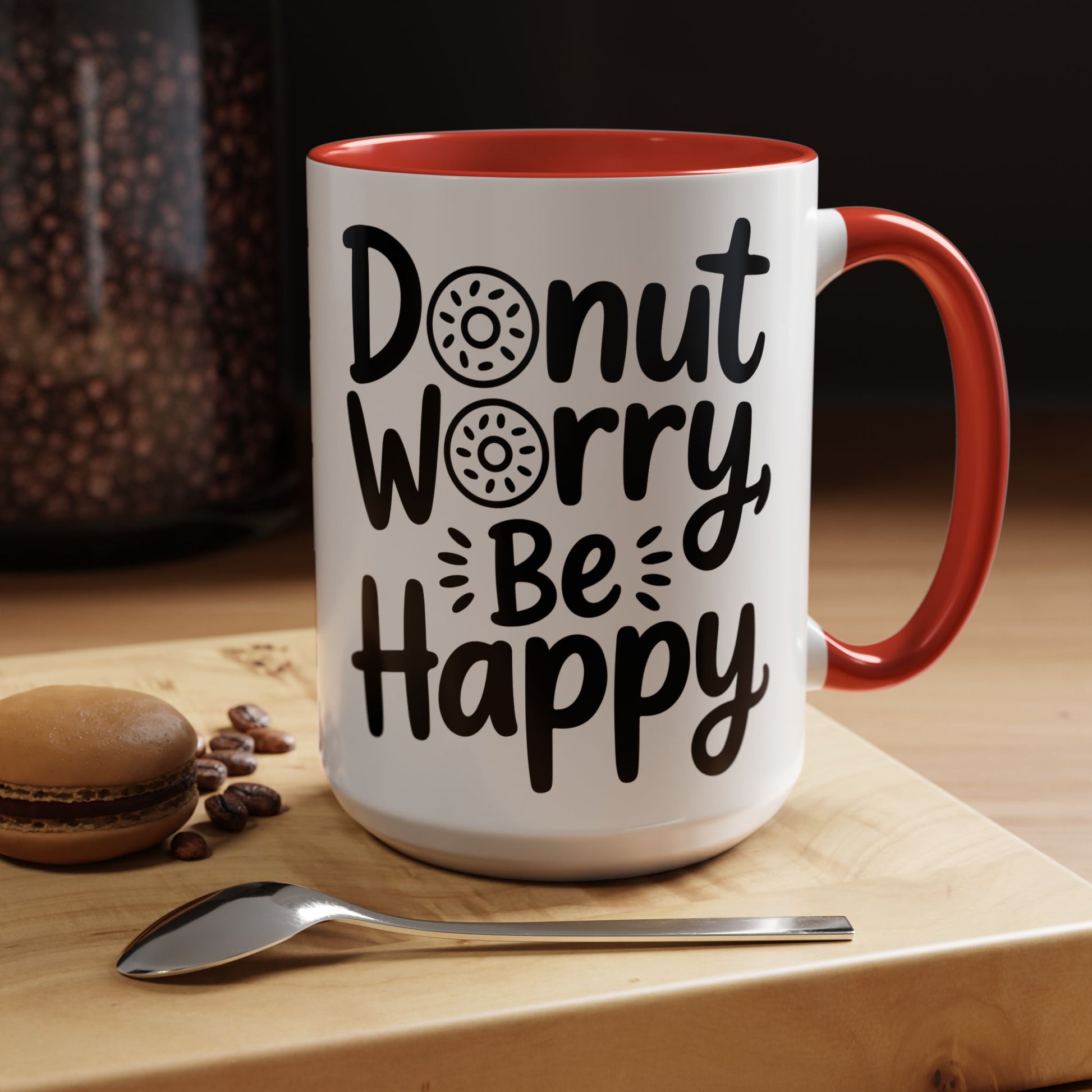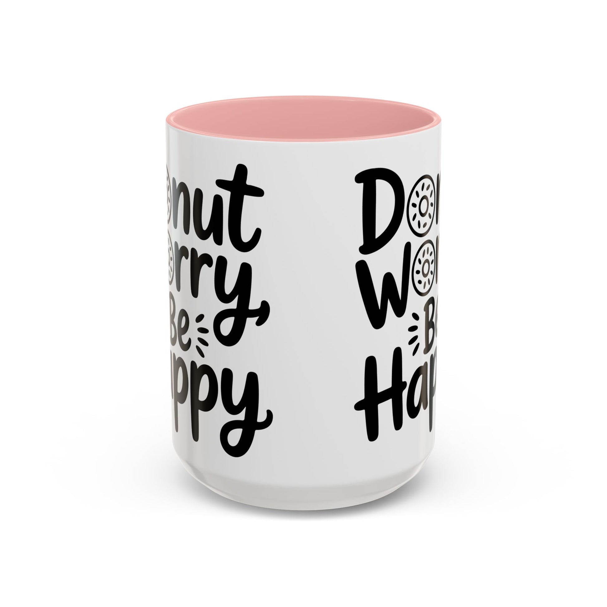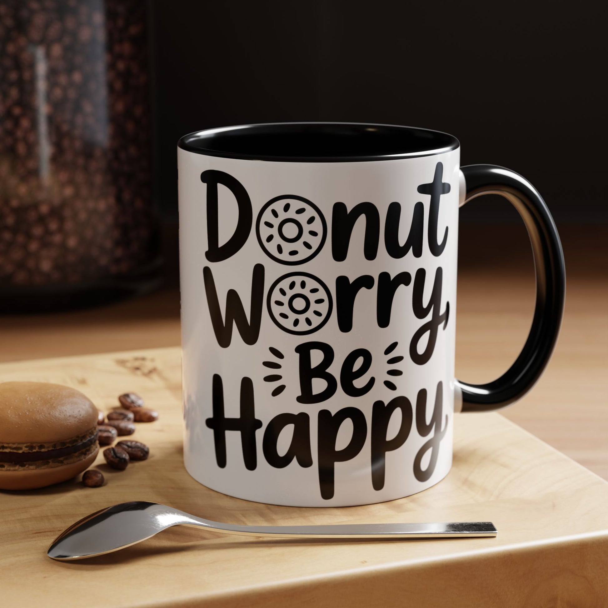 Donut Worry Be Happy Coffee Mug — Funny Positive Quote Accent Mug (11/15oz)