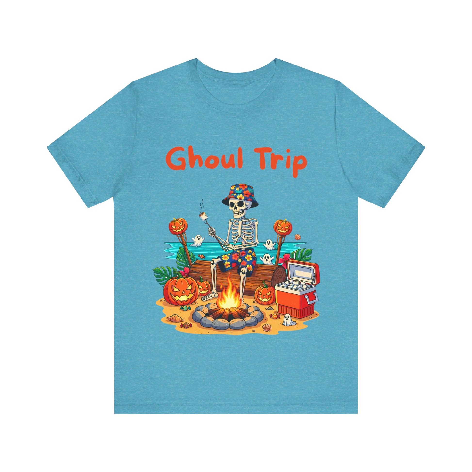 Halloween Ghoul Trip Tee, Unisex Skeleton T-Shirt, Spooky Camping Shirt, Halloween Party Apparel, Fall Themed Gift