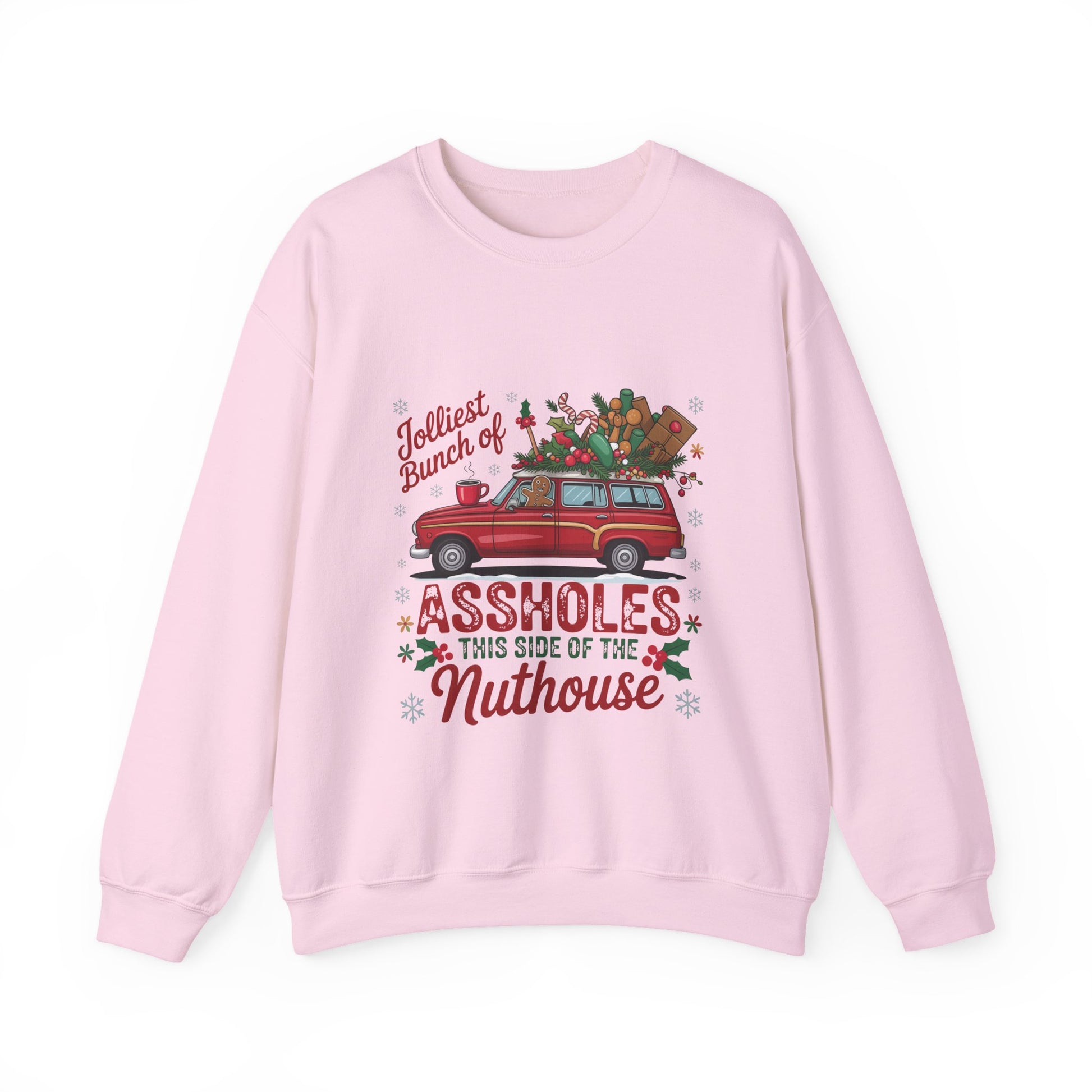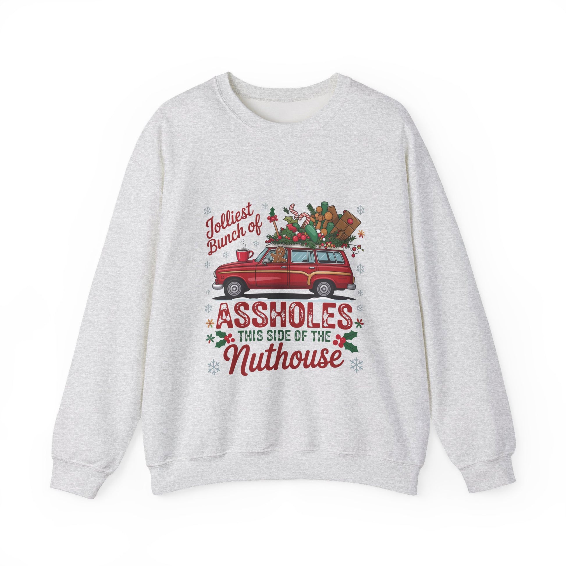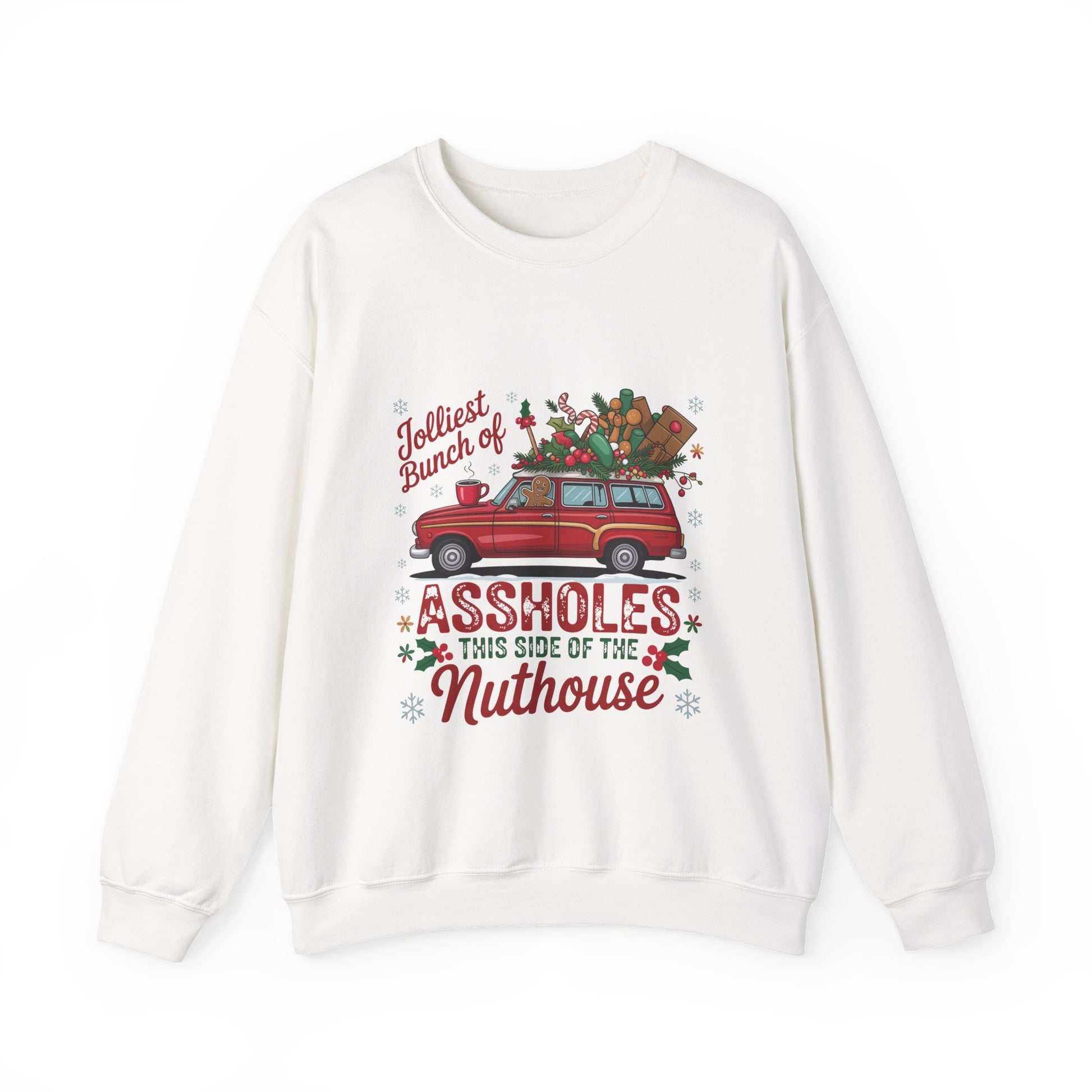 Holiday Crewneck Sweatshirt - "Jolliest Bunch of Assholes This Side of the Nuthouse" Vintage Car Christmas Design