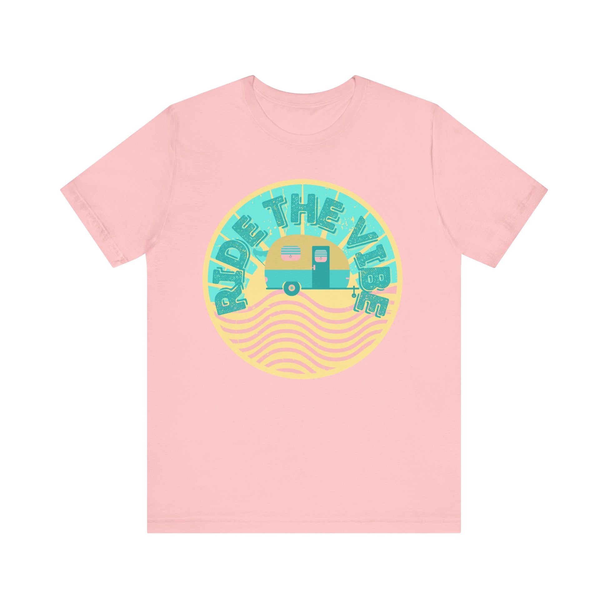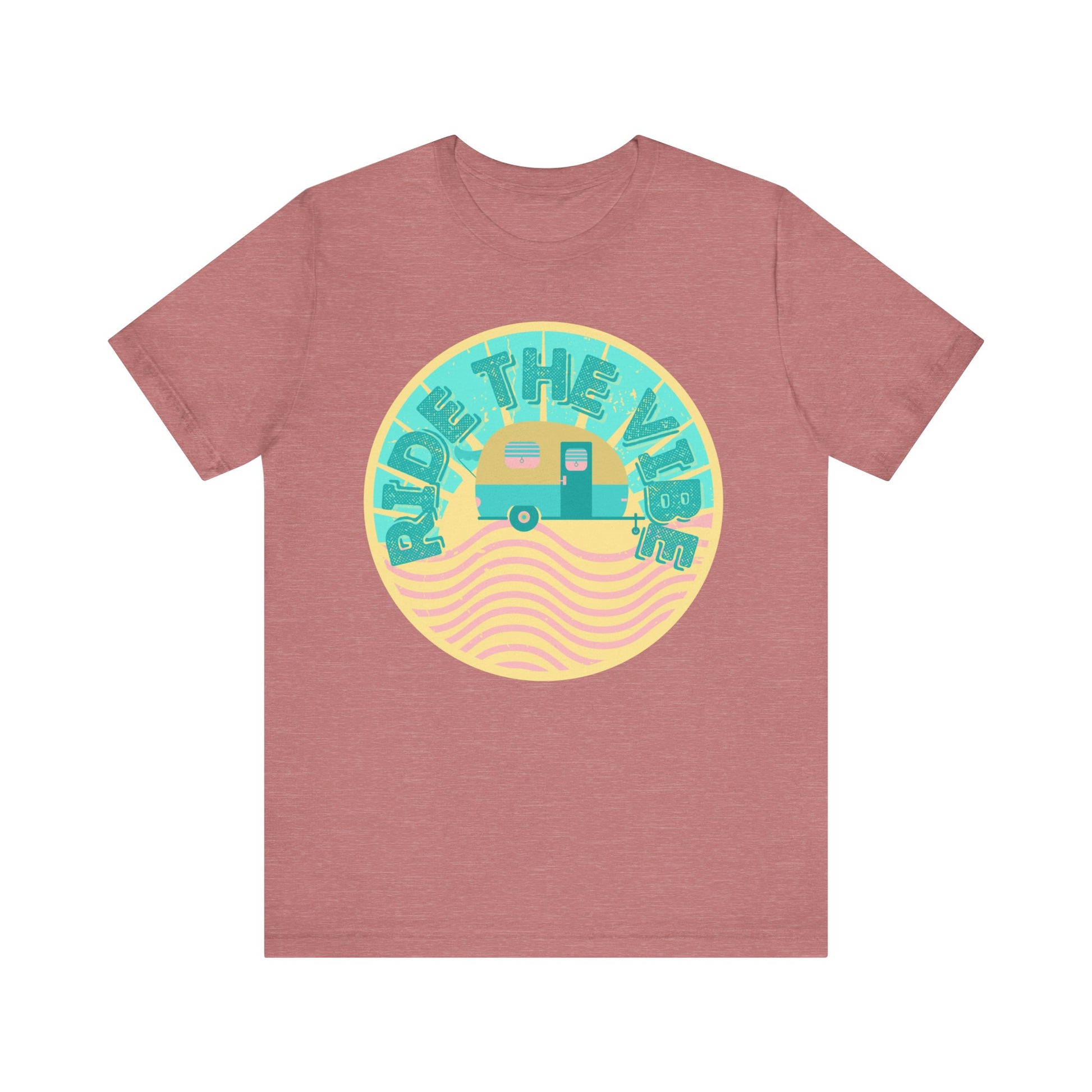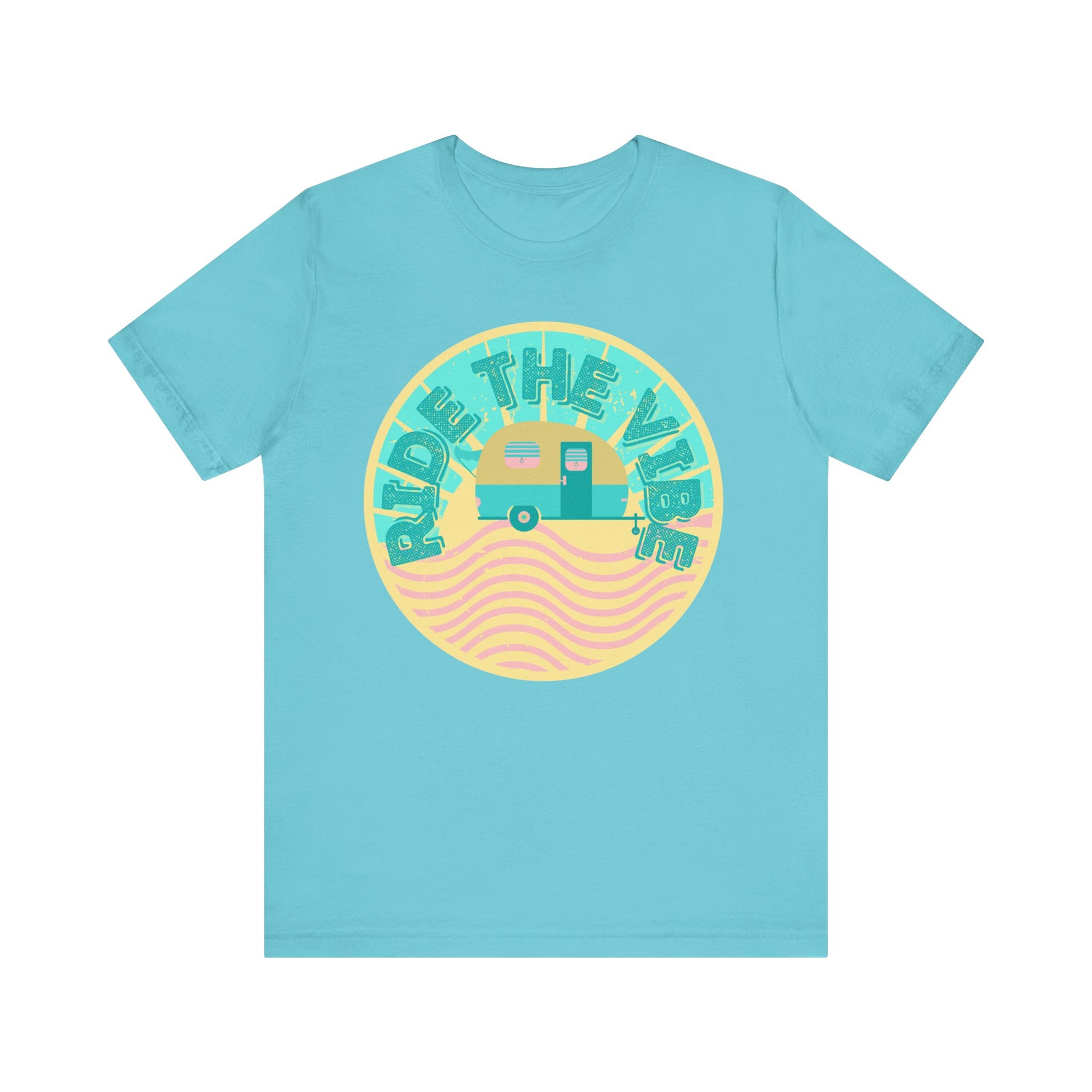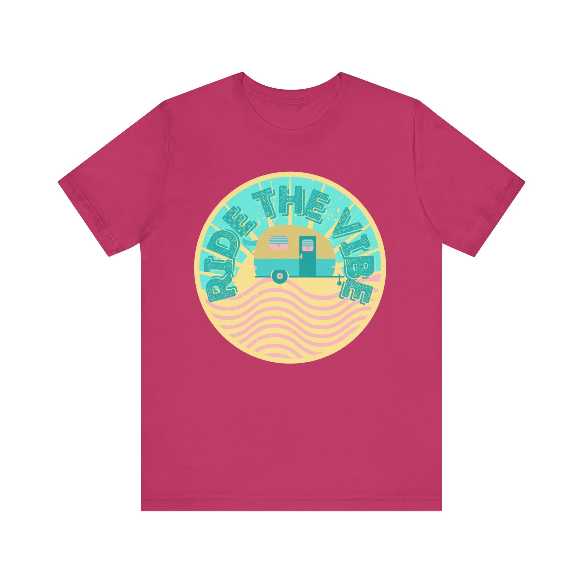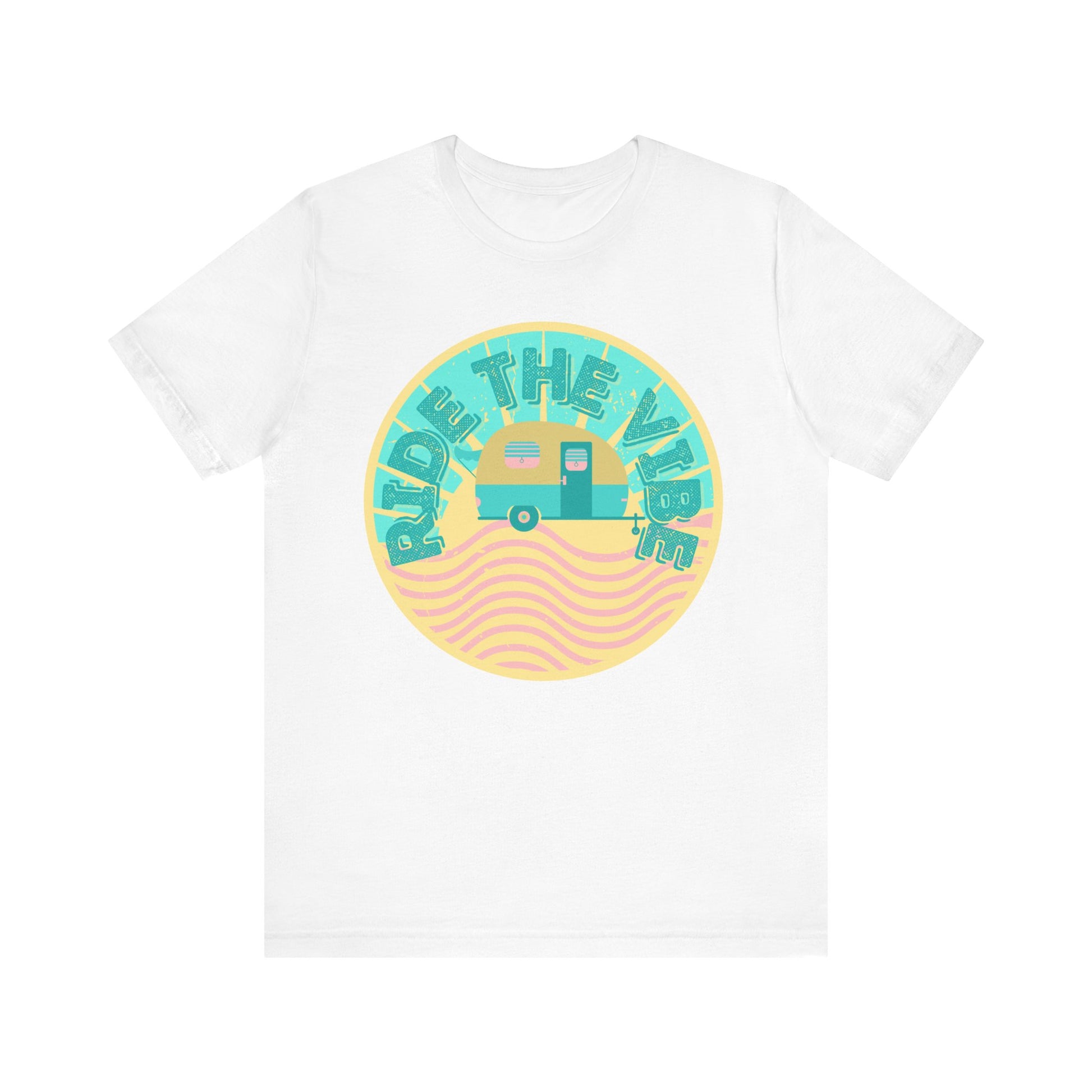 Retro Camping Tee - "Ride the Vibe" Unisex Jersey Short Sleeve Shirt, Summer Fun Shirt, Travel T-Shirt, Adventure Apparel, Outdoorsy Gift