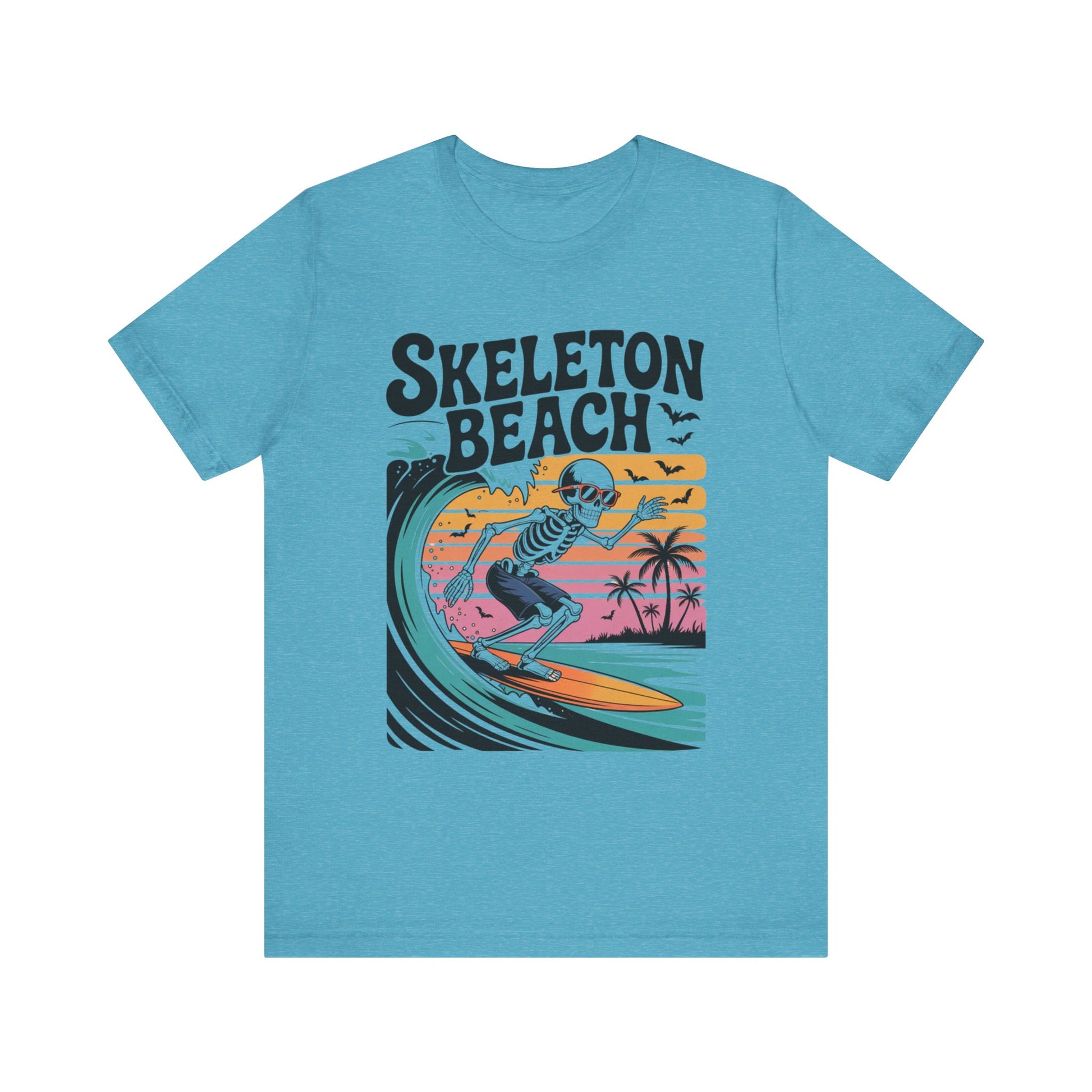 Skeleton Beach Surfing Tee for Summer, Unisex Tee, Beachwear, Vacation Shirt, Fun Gift